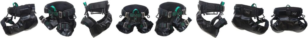 - Saiote de proteção – confeccionado em vinil laminado de alta tenacidade, protege o arnês contra abrasão em rochas, tobogãs naturais e trechos molhados.